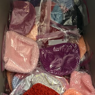 I was gifted a ton of acrylic yarn. In my wild ambition, I bought even more, falling prey to the vicious beast known as “On Sale".” | ![]() 98 Hats, Two Blankets, and Lots of Sanity |